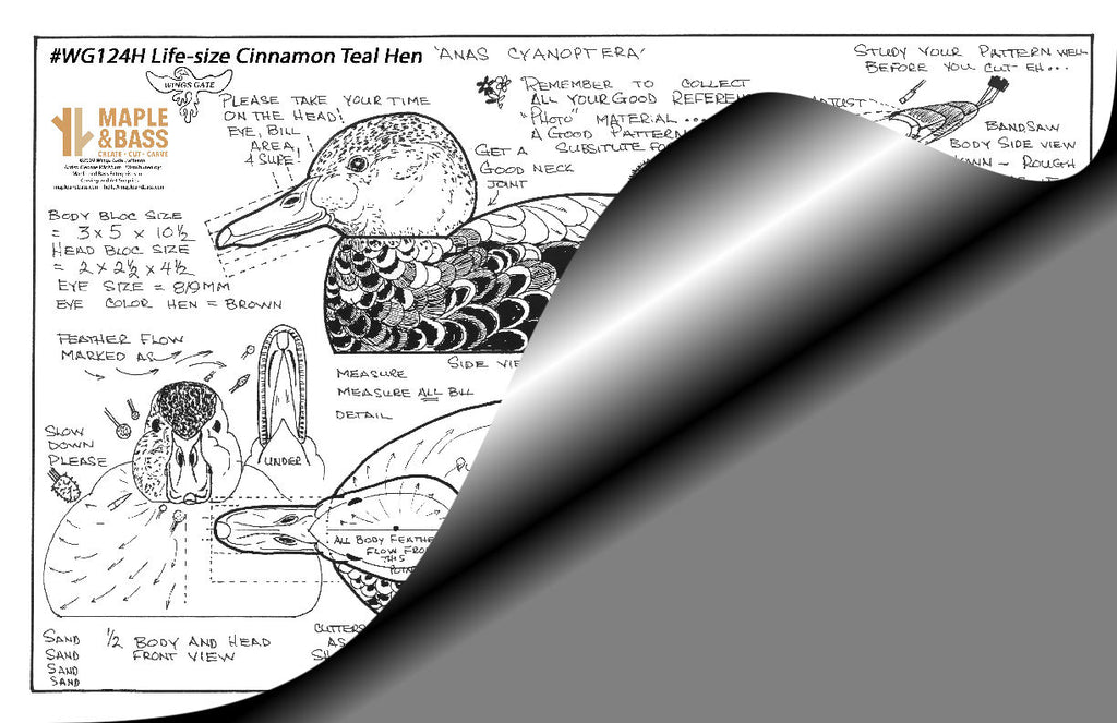 Flat-bottom decoy of a Hen Cinnamon Teal. Body is approximately 10" long. Also has information on inserting the wingtips. Uses 8 or 9mm brown eyes.