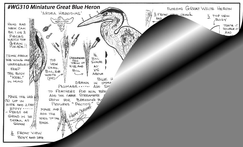 Miniature Great Blue Heron Pattern 8.5x14". Approximately 7" long. Includes great information on feet as well as unique heron eye placement. Uses 4 or 5mm yellow eyes.